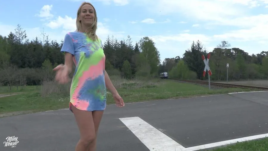 In diesem extrem riskanten Video kannst du die sexy Miley in einem heißen Kleidchen an einem öffentlichen Bahnübergang erleben. Während sie auf eine Freundin wartet, wird sie von einem Typen angesprochen und die beiden lassen ihrer Lust freien Lauf. Was folgt, ist ein wilder 3-Lochfick mitten auf der offenen Fläche am Bahnübergang. Dieses atemberaubende Abenteuer wird dich garantiert in den Bann ziehen.